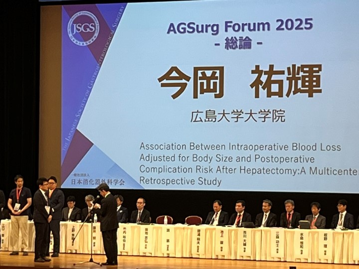 今岡祐輝先生が AGSurg Forum 2025で総論「Association Between Intraoperative Blood Loss Adjusted for Body Size and Postoperative Complication Risk After Hepatectomy: A Multicenter Retrospective Study」で受賞者に選出されました。おめでとうございます。