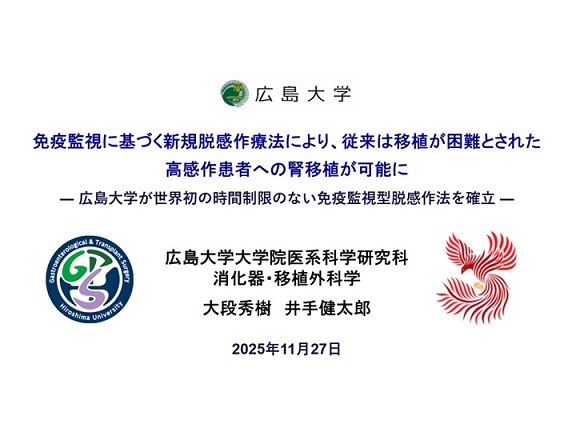广岛大学确立基于免疫监视的新型脱敏疗法,为高致敏患者肾移植带来曙光(2026/1/27)